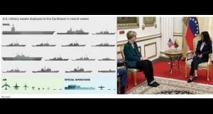 ![]() Por varios meses la United State Navy USN en una acción de guerra, bloqueó la costa venezolana frente al mar caribe amedrentando al país, a través de asaltos y asesinatos, para culminar el 03 de enero con una operación militar causando crímenes y destrucción, adicionalmente secuestró al presidente Maduro y su esposa.